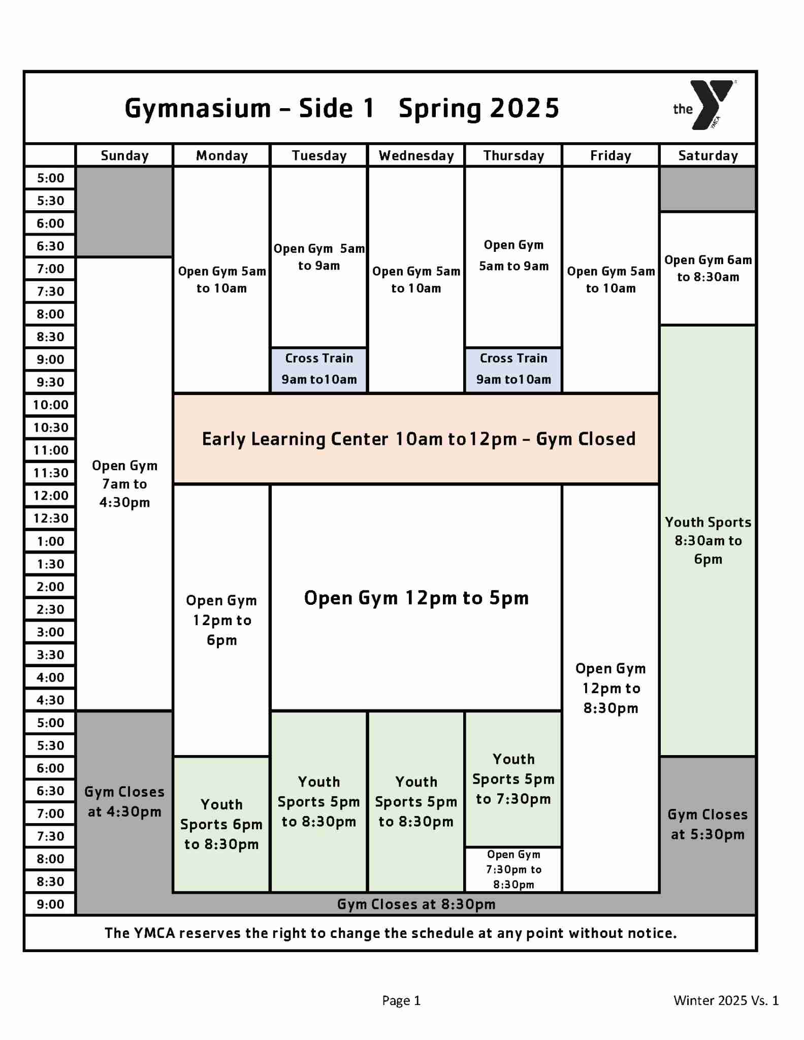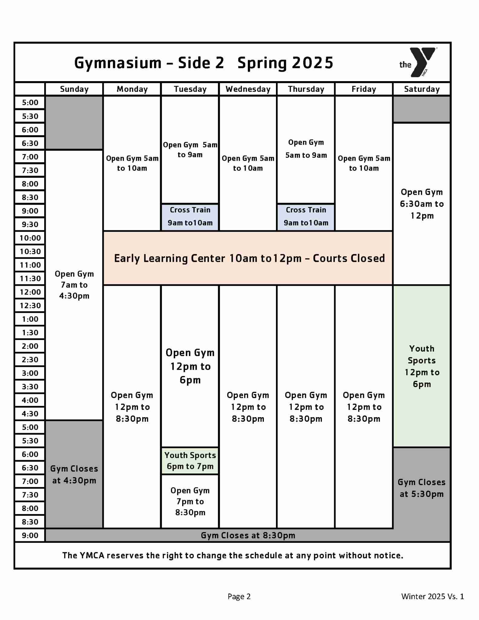Gymnasium Schedule