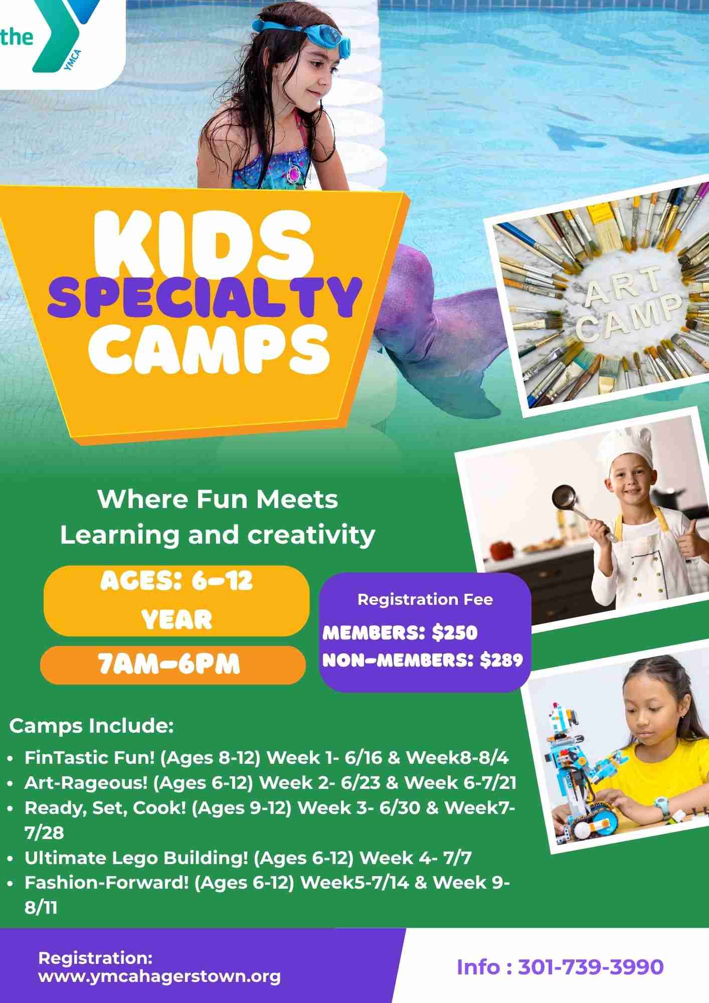 Specialty Camp offer fun of all kinds, we offer a camp for every kid! register Today Fin-Tastic Fun: week1 and week 8 Art-Rageous: week 2 and week 6 Ready, Set, Cook: week 3 and week 7 Unlimited Lego: week 4 Fashion Forward: week 5 and week 9