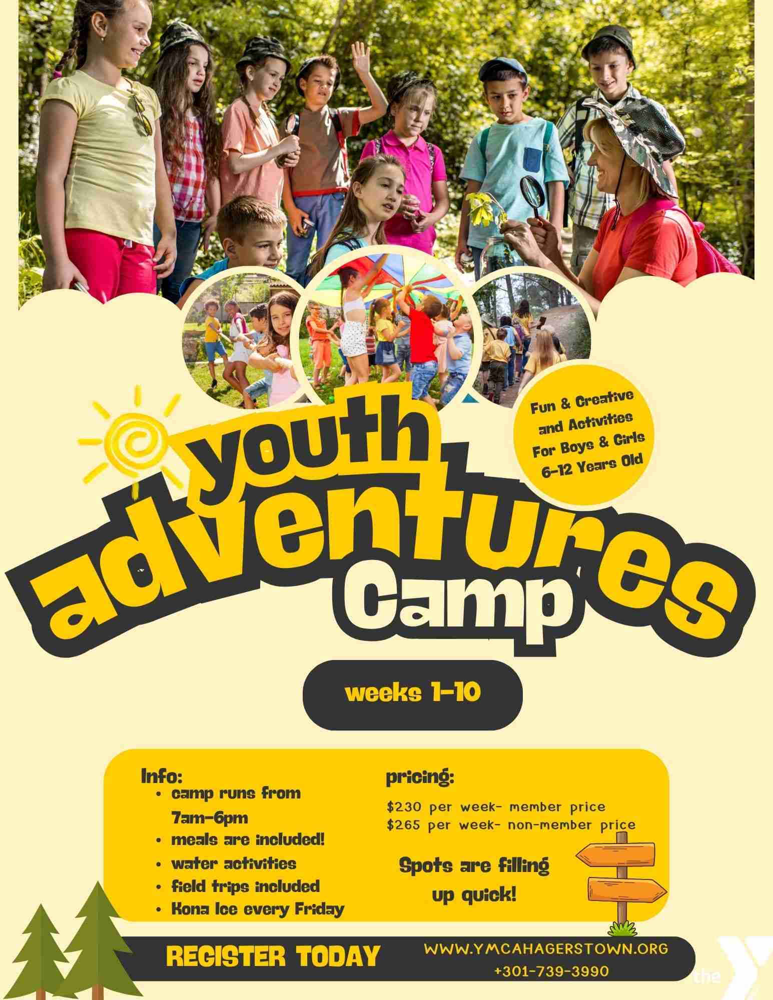 Youth Adventures camp is starting soon! Summer fun awaits register today! runs from week 1- week 10